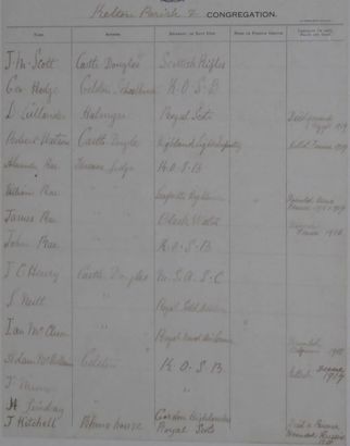 EUROPEAN WAR/OUR ROLL OF HONOUR/Kelton Parish & Congregation