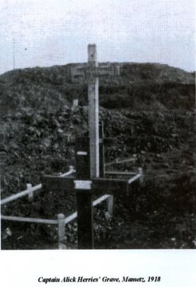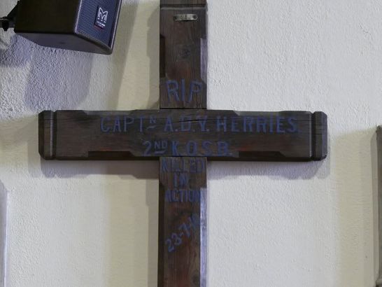 On the Cross: G.R.U./ RIP/ CAPTN A. D. Y. HERRIES/ 2/ K.O.S.B./ KILLED/ IN/ ACTION/ 23-7-16; On the Board: "FORGETTING THOSE THINGS WHICH ARE/ BEHIND, I PRESS TOWARD THE MARK."