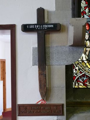 On the Cross: 2/ LIEUT. D. Mc. I. G. FERGUSON/ 2/ K.O.S.B./ 2034; On the Board: I THANK MY GOD/ UPON EVERY REMEMBRANCE OF YOU.