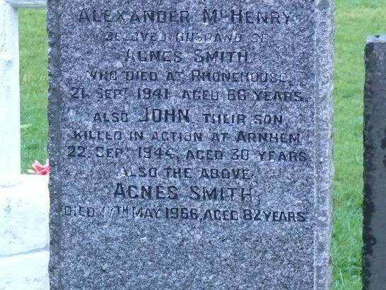.....//ALSO JOHN [MACHENRY] THEIR SON/KILLED IN ACTION AT ARNHEM/22 SEPT 1944 AGED 30 YEARS/....