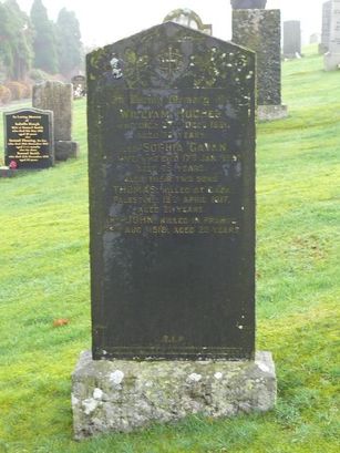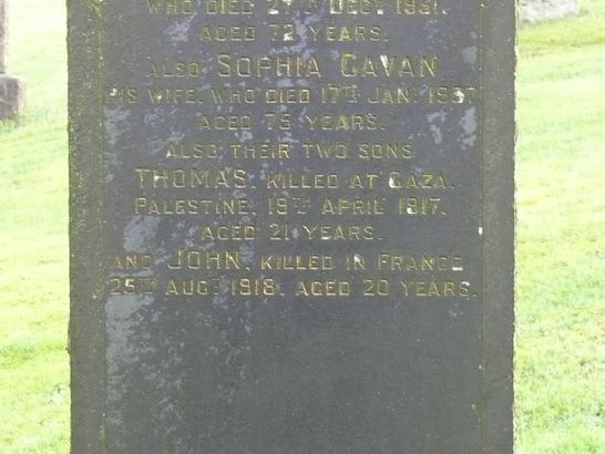 ..../ALSO THEIR TWO SONS/THOMAS [HUGHES], KILLED AT GAZA,/PALESTINE 18TH APRIL 1917,/AGED 21 YEARS/ ALSO JOHN KILLED IN FRANCE/25 AUG 1918 AGED 20 YEARS