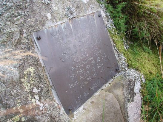 NEAR THIS SPOT ON 23RD/MAY 1942 PILOT OFFICER/DAVID HUNTER BLAIR/AGED 19- A SCOT FROM/AYRSHIRE WAS MORTALLY/WOUNDED AFTER/PARACHUTING FROM/SPITFIRE MK VB AD 540/BLUE PETER HE DIED THAT/OTHERS MAY LIVE/LEST WE FORGET 1993