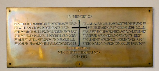 IN MEMORY OF / (12 NAMES) / OF THIS PARISH / WHO DIED IN THE GREAT WAR / 1914 - 1919.