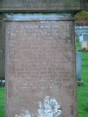 ...../HUGH [MCGARVA] WHO WAS KILLED IN ACTION IN/FRANCE 15TH JUNE 1915, AGED 27 YEARS/.....