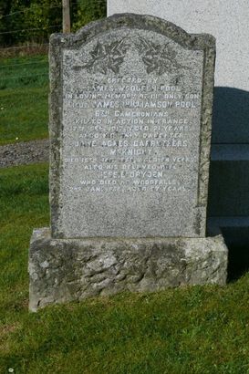IN LOVING MEMORY OF HIS ONLY SON/LIEUT JAMES WILLIAMSON POOL/6TH CAMERONIANS/KILLED IN ACTION IN FRANCE/17TH SEP 1917 AGED 21 YEARS/.....