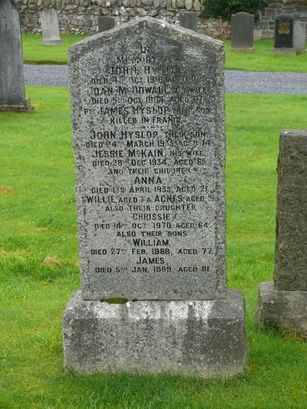 ...../PTE JAMES HYSLOP THEIR SON/KILLED IN FRANCE/....