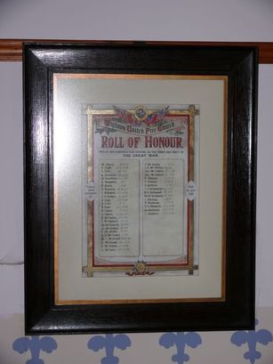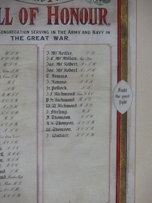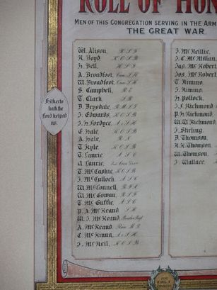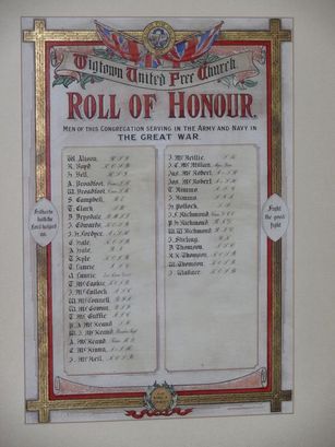 WIGTOWN UNITED FREE CHURCH/ROLL OF HONOUR/MEN OF THIS CONGREGATION SERVING IN THE ARMY AND NAVY IN/THE GREAT WAR/[names]