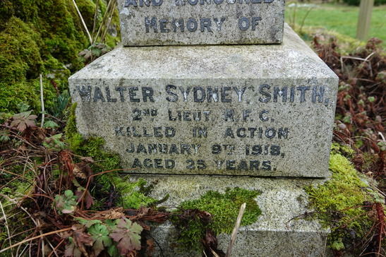 IN LOVING/ AND HONOURED/ MEMORY OF/ WALTER SYDNEY SMITH/ 2nd LIEUT R.F.C./ KILLED IN ACTION/ JANUARY 9th 1918/ AGED 25 YEARS.