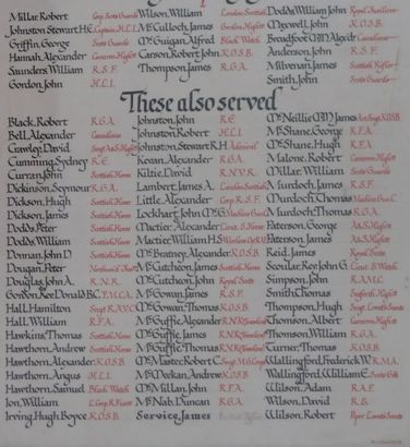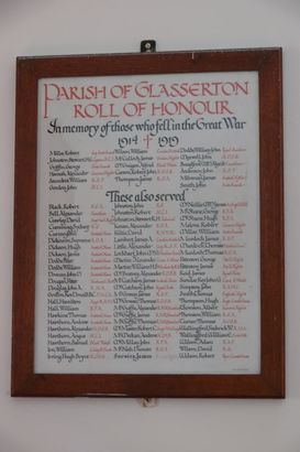 PARISH OF GLASSERTON/ROLL OF HONOUR/In Memory of those who fell in the Great War/1914-1919//[17 names]/These also served/[69 names]