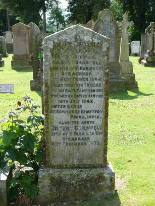 ...../ALSO THEIR SON THOMAS [CARSWELL] PTE 1ST CAMERON HRS/WHO DIED ON ACTIVE SERVICE/15TH JULY 1942/INTERRED IN/AT SEPULCHRE CEMETERY/POONA, INDIA/.....