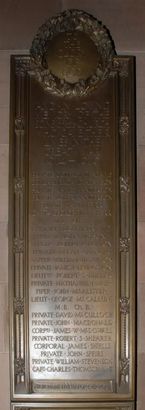 Private Godfrey D. Adams/ Bombardier David Adamson/ Private James Anderson/ Private Robert Anderson/ Private David Barr/ Captain George Blett Barr M.B. Ch.B./ Captain Hugh Barr M.D./ Private John Bryson/ Sergeant Robert R. Fulton/ Private Allan Granger/ Sapper William Hamilton/ Private James F. Livingston/ Lieutenant Robert S. Millar/ Private Nathaniel I. Muir/ Piper John McAlister/ Lieutenant George McCallum M.B. Ch.B./ Private David McCulloch/ Private John Macdonald/ Corporal James W. McDowall/ Private Robert S. Shearer/ Corporal James Shiells/ Private John Speirs/ Private William Stevenson/ Captain Charles Thomson MC/