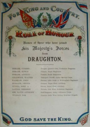FOR KING AND COUNTRY./ ROLL OF HONOUR/ NAMES OF THOSE WHO HAVE JOINED/ HIS MAJESTY'S FORCES/ FROM/ DRAUGHTON/ (10 names)/ GOD SAVE THE KING