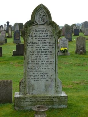....//IN LOVING MEMORY OF/THEIR SON/PTE WILLIAM MONTEITH 1.5 R.S.F/WHO FELL IN ACTION AT CAMBRAI/1ST OCT 1918 IN HIS 21ST YEAR/...