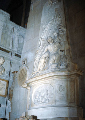'Erected by the Honourable EAST INDIA COMPANY as a grateful Testimony to the Valour and eminant services of CAPTAIN EDWARD COOKE Commander of His Majesty's ship SYBILLE; who, on the 1st March 1799, after a long and well-contested Engagement captured LA-FORTE, a French Frigate of very superior Force, in the Bay of BENGAL: An Event not more splendid in its Achievement, than important in its Results to British Trade in INDIA. He died in Consequence of the severe wounds he received in the memorable Action on the 23d of May 1799; aged 27'