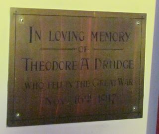 IN LOVING MEMORY/OF/THEODORE A DRUDGE/WHO FELL IN THE GREAT WAR/ NOV 16TH 1917