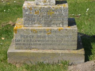 Top Base-IN LOVING MEMORY OF/ JOHN, ONLY SON OF PERCY AND/ ANNE BEATTIE-CROZIER/ DIED JANY. 15TH 1915 AGED 3 DAYS/ Middle Base-AND OF HIS FATHER/ PERCY BEATTIE-CROZIER/ CAPT. 4TH RAJPUTS (ATTACHED) 15TH SIKHS/ WHO WAS KILLED IN ACTION 19TH MAY 1915 NEAR/ RICHEBOURG-L'AVOUE AGED 34 YEARS/ HE RESTS AT VIELLE-CHAPELLE, FRANCE