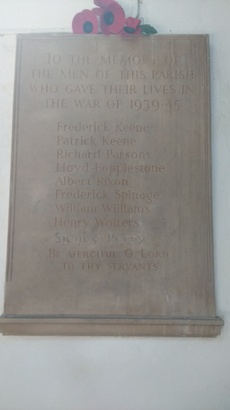 TO THE MEMORY OF THE MEN OF THIS/ PARISH WHO GAVE THEIR LIVES IN THE WAR OF 1939 - 1945/ (Names)/ BE MERCIFUL O LORD TO THY SERVANTS