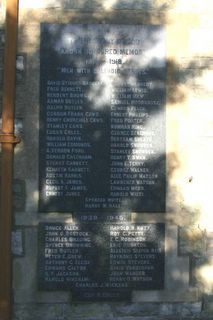 TO THE GLORY OF GOD/ AND IN HONOURED MEMORY/ 1914 - 1918/ "MEN WITH SPLENDID HEARTS"/[40 names in 2 columns]
