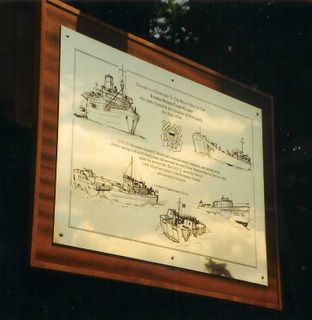 GRATEFULLY DEDICATED TO THE BRAVE MEN OF THE/ UNITED STATES COAST GUARD/ Who participated in the invasion of Normandy/ 6th June 1944/ U.S.C.G. personnel crewed 97 British and American attack transports, and landing ships,/ crewed landing craft at all beach heads and provided the sole D-Day Maritime Rescue Service, often/ under the severest fire. The U.S.C.G. saved the lives of/ 1,438 Allied Servicemen in the Normandy Assault/ area during the invasion./ Unveiled by Captain Somers U.S.C.G.