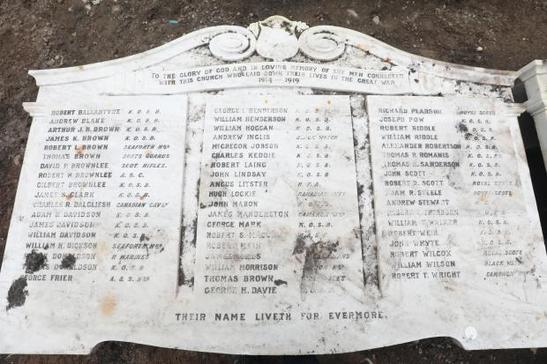 These are the details of the men commemorated [all but the last 3 are on the Galashiels Civic Memorial- these details were prepared by Ken Morrison, with thanks]- COLUMN 1 ROBERT BALLANTYNE K.O.S.B. Robert Brunton Ballantyne, Private (23619) 1st Battalion, King's Own Scottish Borderers. Missing in Action – 30 January 1917. ANDREW BLAKE K.O.S.B. Andrew Blake, Private (201451) 1/4th (Border) Battalion, King's Own Scottish Borderers. Died of Wounds – 10 May 1917. ARTHUR J. B. BROWN K.O.S.B. Arthur James Balfour Brown, Private (6854) 1/4th (Border) Battalion, King's Own Scottish Borderers. Missing in Action – 12 July 1915. JAMES K. BROWN K.O.S.B. James Knox Brown, Military Medal, Sergeant (40121) 6th Battalion, King's Own Scottish Borderers. Killed in Action – 30 September 1918. ROBERT L.BROWN SEAFORTH HRS. Robert Lawson Brown, Lance Corporal (628) 1st Battalion, Seaforth Highlanders. Missing in Action – 9 May 1915. and his brother THOMAS BROWN SCOTS GUARDS. Thomas Brown, Private (12640) 1st Battalion, Scots Guards. Killed in Action – 30 March 1916. DAVID P. BROWNLEE SCOT. RIFLES. David Purves Brownlee, Private (235122) 10th Battalion, Cameronians (Scottish Rifles) Died of Wounds – 12 June 1918. and his brother ROBERT H. BROWNLEE A.S.C. Robert Hall Brownlee, Driver (T4/246349) No.1 Depot, Army Service Corps. Died on Service – 1 August 1917. GILBERT BROWNLEE K.O.S.B. Gilbert Brownlee, Private (7999) 1st Battalion, King's Own Scottish Borderers. Missing in Action – 26 April 1915. JAMES S. CLARK K.O.S.B. James Small Clerk, Private (25680) 6th Battalion, King's Own Scottish Borderers. Missing in Action – 3 May 1917. CHARLES R. DALGLIESH CANADAIAN CAVLY. Charles Rieve Dalgliesh, Private (114809) Canadian Cavalry Brigade, Machine Gun Squadron. Died of Wounds – 1 April 1918. ADAM D. DAVIDSON K.O.S.B. Adam Dalgleish Davidson, Private (6619) 1/4th (Border) Battalion, King's Own Scottish Borderers. Missing in Action – 12 July 1915. JAMES DAVIDSON K.O.S.B. James Davidson, Private (12814) 7th Battalion, King's Own Scottish Borderers. Missing in Action – 11 May 1916. WILLIAM DAVIDSON K.O.S.B. ????????????? WILLIAM H. DICKSON SEAFORTH HRS. William Henry Dickson – age 21 – Private (S/9681) 8th Battalion, Seaforth Highlanders. Killed in Action – 23 April 1917. FRANK DONALDSON R.MARINES. Served as: Frank McLean – age 25 – Private (CH/17765) H.M.S. Glory, Royal Marine Light Infantry. and his cousin THOMAS DONALDSON K.O.S.B. Thomas Donaldson, Private (200464) 1/4th (Border) Battalion, King's Own Scottish Borderers. Died on Service as a prisoner of war – between 1 and 30 November 1917. GEORGE FRIER A. & S. HRS. George Frier, Lance Corporal (S/12110) 1/7th Battalion, Argyll and Sutherland Highlanders. Died of Wounds – 24 March 1918. COLUMN 2 GEORGE L. HENDERSON K.O.S.B. George Laing Henderson, Private (200497) 1/4th (Border) Battalion, King's Own Scottish Borderers. Died at home – 19 October 1919. WILLIAM HENDERSON K.O.S.B. ???????????????? WILLIAM HOGGAN K.O.S.B. William Hoggan – age 35 – Private (25762) 1st Battalion, King's Own Scottish Borderers transferred as Private (118438) to the 851st Area Employment Company of the Labour Corps. Died of Wounds – 1 August 1918. ANDREW INGLIS BLACK WATCH Andrew Baillie Inglis, Private (S/12543) 8th Battalion, Black Watch (Royal Highlanders) Killed in Action – 19 July 1918. McGREGOR JOBSON K.O.S.B. McGregor Jobson, Major, 4th Battalion, King's Own Scottish Borderers. Died of Wounds – 3 May 1918. CHARLES KEDDIE K.O.S.B. Charles Keddie, Private (6830) 1/4th (Border) Battalion, King's Own Scottish Borderers. Missing in Action – 12 July 1915. ROBERT LAING K.O.S.B. Robert Laing, Private (6561) 1/4th (Border) Battalion, King's Own Scottish Borderers. Missing in Action – 12 July 1915. JOHN LINDSAY K.O.S.B. John Harvey Lindsay, Corporal (200441) 1/4th (Border) Battalion, King's Own Scottish Borderers. Died of Wounds – 29 November 1917. ANGUS LITSTER R.F.A. Angus Litster, Gunner (109077) Royal Field Artillery. Died on Service – 21 September 1916. HUGH LOCKIE CANADIAN INFY. Hugh Lockie, Private (406754) 4th Battalion, Canadian Infantry. Died of Wounds – 10 October 1916. JOHN MABON K.O.S.B. John Mabon, Private (200403) 1/5th (Dumfries and Galloway) Battalion, King's Own Scottish Borderers. Killed in Action – 19 April 1917. JAMES MANDERSTON CAMERON HRS. James Manderston, Private (S/13939) 7th Battalion, Cameron Highlanders. Missing in Action – 25 September 1915. GEORGE MARK K.O.S.B. George Mark, Private (7064) 2/4th Battalion, King's Own Scottish Borderers. Died at home – 1 June 1919. ROBERT S. MASON A.S.C. Robert Scott Mason, Corporal (S/307598) "E" Supply Company, Royal Army Service Corps. Died on Service – 1 October 1919. ROBERT MEIN K.O.S.B. Robert Mein, Private (201051) 1/4th (Border) Battalion, King's Own Scottish Borderers. Died on Active Service – 27 March 1917. JAMES MILLS CANADIANS. James Mills, Private (201647) 1st Battalion, Canadian Infantry. Died of Wounds – 11 April 1917. WILLIAM MORRISON GORDON HRS. William Morrison, Private (202953) 1st Battalion, Gordon Highlanders. Killed in Action – 27 September 1918. THOMAS BROWN SCOT. RIFLES. • Thomas Brown, Private (42412) 9th Battalion, Cameronians (Scottish Rifles) • Killed in Action – 18 August 1918. GEORGE H. DAVIE K.O.S.B. • George Henderson Davie, Private (8494) King's Own Scottish Borderers. • Died at home – 17 December 1920. COLUMN 3 RICHARD PEARSON ROYAL SCOTS. Richard Pearson, Private (59926) 2nd Battalion, Royal Scots. Died of Wounds – 24 October 1918. JOSEPH POW K.O.S.B. Joseph Pow, Private (200537) 1/4th (Border) Battalion, King's Own Scottish Borderers. Missing in Action – 13 November 1917. ROBERT RIDDLE K.O.S.B. Robert Riddle, Private (6911) 1/4th (Border) Battalion, King's Own Scottish Borderers. Missing in Action – 12 July 1915. and his brother WILLIAM RIDDLE K.O.S.B. William Riddle, Private (6912) 1/4th (Border) Battal