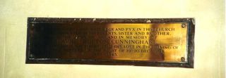 THE SANCTUARY LAMP, WAFER BOX AND PYX IN THIS CHURCH/ WERE PRESENTED BY HIS PARENTS, SISTER AND BROTHER/ TO THE GLORY OF GOD AND IN MEMORY OF/ DAVID CROFTON CUNNINGHAM/ LIEUTENANT, ROYAL NAVY, BORN 23.12.1913, LOST IN THE MINING OF/ H.M.S. NEPTUNE ON THE NIGHT OF 19-20 DEC 1941/ 1939 - 1945