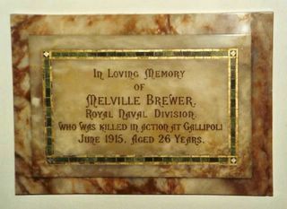 IN LOVING MEMORY/ OF/ MELVILLE BREWER/ ROYAL NAVAL DIVISION/ WHO WAS KILLED IN ACTION AT GALLIPOLI/ JUNE 1915, AGED 26 YEARS
