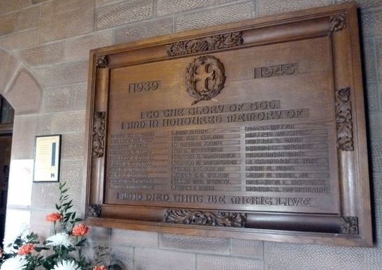 1939 – 1945/TO THE GLORY OF GOD AND IN HONOURED MEMORY OF/[names in 3 columns]/WHO DIED THAT WE MIGHT LIVE