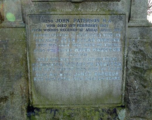 ERECTED/BY/HIS FATHER/…/IN LOVING MEMORY/OF HIS YOUNGEST/SON/LIEUT. HUGH HOUSTON/17TH THE ROYAL SCOTS/KILLED IN ACTION.AT/HOUTHOULST FOREST/FLANDERS/24TH OCTOBER 1917/AGED 27 YEARS