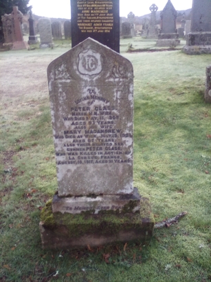 …../ALSO THEIR BELOVED SON/GUNNER PETER GLASS/WHO WAS KILLED IN ACTION AT/LA GORGUE, FRANCE/AUGUST 10, 1917, AGED 31 YEARS