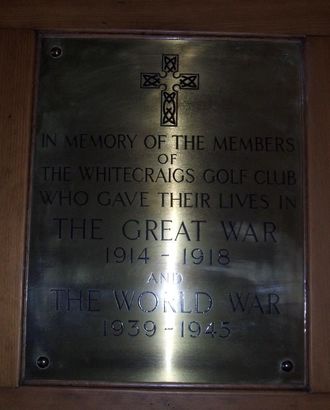 +/IN MEMORY OF THE MEMBERS/ OF/ THE WHITECRAIGS GOLF CLUB/ WHO GAVE THEIR LIVES IN/ THE GREAT WAR /1914 -1918/ AND THE/ WORLD WAR/ 1939 – 1945