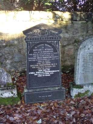 .…./AND OF THEIR ELDEST SON/WILLIAM ANGUS ROBERTSON R.A.M.C./WHO DIED IN EAST AFRICA 18TH JULY 1917/AGED 22 YEARS/….