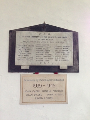 In memory of Parishioners who died/ 1939 - 1945/ (Names