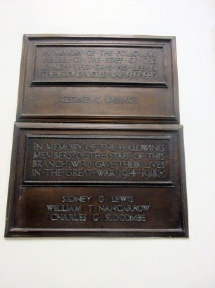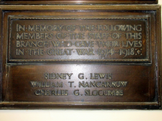 IN MEMORY OF THE FOLLOWING MEMBERS OF THE STAFF OF THIS BRANCH WHO GAVE THEIR LIVES IN THE GREAT WAR 1914-1918 (names)