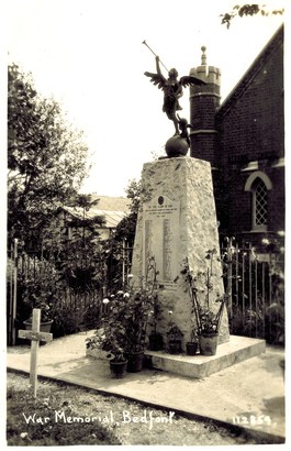 Battlefield Cross in front of East Bedfont Memorial, date unknown but pre-WW2 - Taken by Unknown 01 Jan 1930