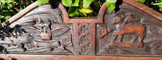 Regimental badge carvings on seat - Taken by Dennis Buck 17 Oct 2019