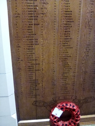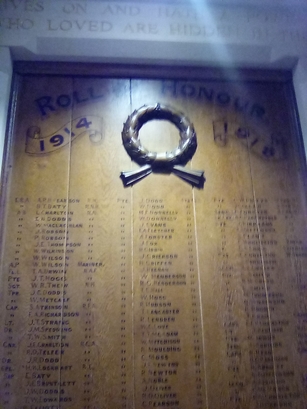 AND LOVE LIVES ON, AND HATH A POWER TO BLESS/WHEN THEY WHO LOVED ARE HIDDEN IN THE GRAVE/ROLL OF HONOUR 1914 1918/[names in 3 columns]