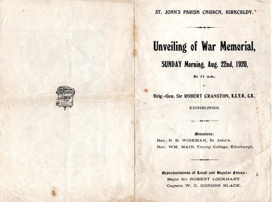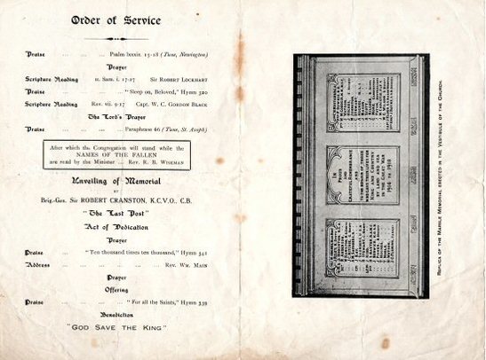 Order of service for the original unveiling in 1920- 1 of 2 - Taken by John Burnett 03 Aug 2008