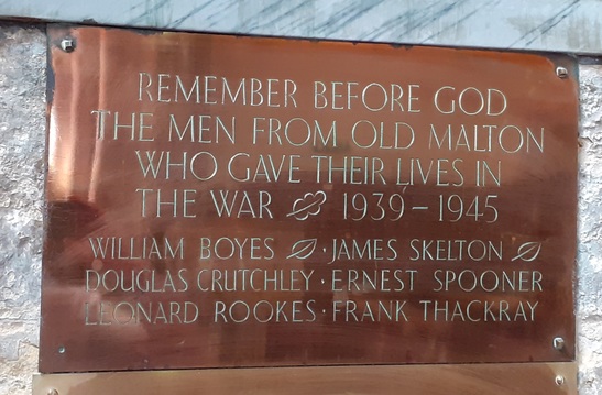 REMEMBER BEFORE GOD / THE MEN FROM OLD MALTON / WHO LAID DOWN THEIR LIVES IN / THE WAR 1939 - 1945 / [names x 6]