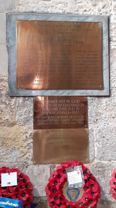 1914-1918 / [name x 1] / 1939-1945 / [name x 1] / WHOSE RIGHTEOUSNESS HATH NOT BEEN FORGOTTEN