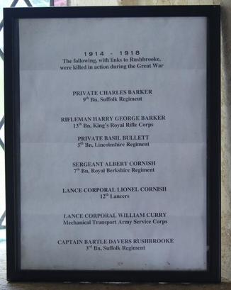 1914-1918/The following, with links to Rushbrooke,/were killed in action during the Great War/(Names)//