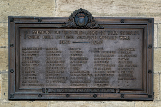 IN MEMORY OF THE BOYS OF THIS SCHOOL/ WHO FELL IN THE GREAT WAR/ 1939-1945/ (58 names)/ WE WILL REMEMBER THEM