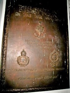 THESE SERVED AND / DIED FOR ENGLAND / IN THE WAR 1914 – 1919 / (Names) / "GRANT THEM O LORD ETERNAL REST.”