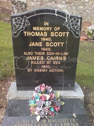 ..../ALSO THEIR SON-IN-LAW/JAMES CAIRNS/KILLED AT SEA/1941,/BY ENEMY ACTION