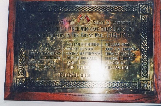 TO THE GLORY OF GOD AND/ SACRED TO THE MEMORY OF/ THE MEN OF THIS CHURCH WHO GAVE THEIR LIVES FOR/ THEIR COUNTRY IN THE GREAT WAR 1914 - 1918/ (18 names)/ "FAITHFUL UNTO DEATH"
