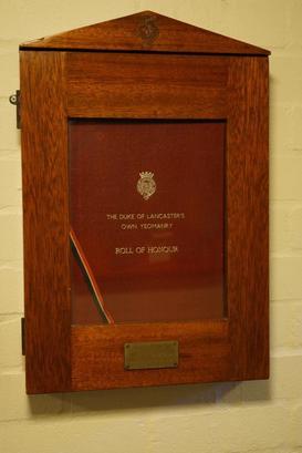 On the front of the book: The Duke of Lancaster's/ Own Yeomanry/ Roll of Honour On the case: Presented to the Regiment by/ Lt Col NH Phillips CO 1967 - 72 &/ Lt Col JD Bastick MBE CO 1972-74