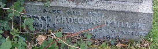 ....//ALSO HIS SON/THOMAS MURRAY MILLER/2ND LIEUT. K.O.S.B. KILLED IN ACTION/[covered by leaves]27TH JANY 1916