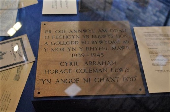 ER COF ANNWYL AM DDAU/ O FECHGYN YR EGLWYS HON/ A GOLLODD EU BYWYDAU AR/ Y MOR YN Y RHYFEL MAWR/ 1939 - 1945/ (Names)/ "YN ANGOF NI CHANT FOD"