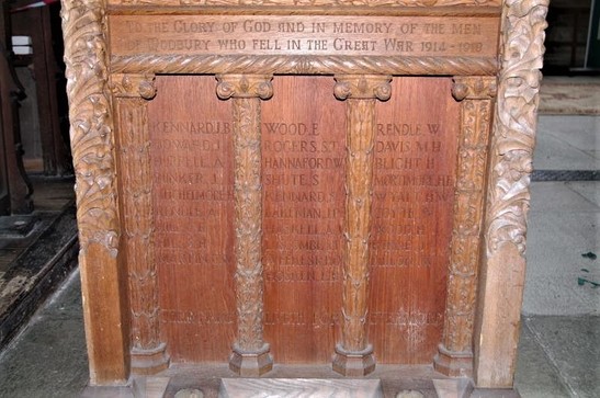 TO THE GLORY OF GOD AND IN MEMORY OF THE MEN/ OF MODBURY WHO FELL IN THE GREAT WAR 1914 - 1919/ (Names)/ THEIR NAME LIVETH FOR EVERMORE