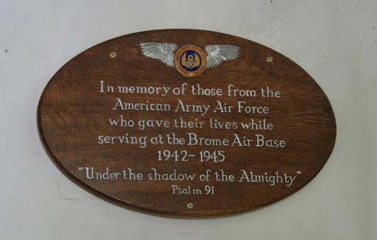 In Memory of those from the/American Army Air Force/who gave their lives while/serving at the Brome Air Base/1942-1945/"Under the shadow of the Almighty"/Psalm 91//