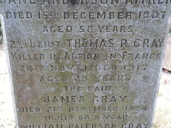 .…/2ND LIEUT. THOMAS R GRAY/KILLED IN ACTION IN FRANCE/24TH NOVEMBER 1917/AGED 20 YEARS/…...